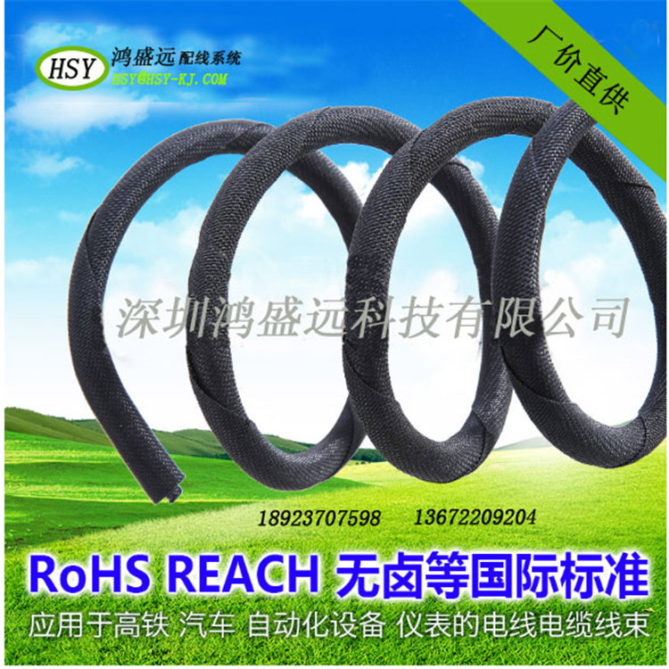 自卷式紡織套管(HSY)是用聚酯單絲和聚酯復(fù)絲紡織而成,具有耐磨性,耐酸性,防塵性,柔軟性,操作簡(jiǎn)單,方便,快捷等特點(diǎn),開口式的結(jié)構(gòu)有利于保護(hù)內(nèi)部線束的保養(yǎng),重裝和檢修.產(chǎn)品廣泛應(yīng)用于高鐵行業(yè),汽車行業(yè),通訊行業(yè),自動(dòng)化設(shè)備等各種線束的保護(hù),尤其適用于不規(guī)則形狀的線束領(lǐng)域.